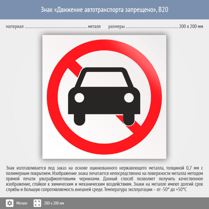 Знак «Движение автотранспорта запрещено», B20 (металл, 200х200 мм) в Альметьевске купить
