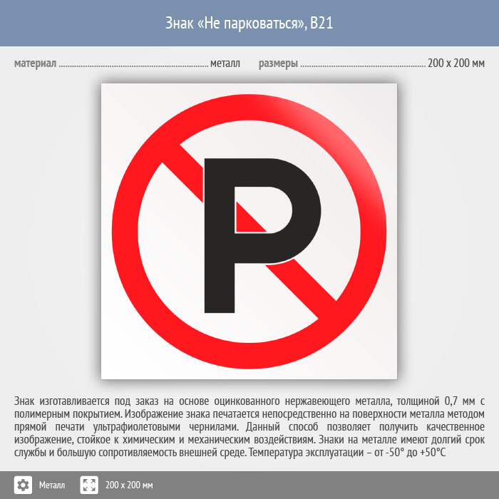 Знак «Не парковаться», B21 (металл, 200х200 мм) в Альметьевске купить