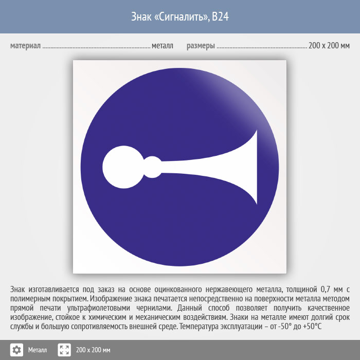 Знак «Сигналить», B24 (металл, 200х200 мм) в Альметьевске купить