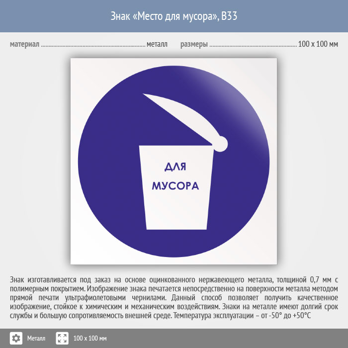 Знак «Место для мусора», B33 (металл, 100х100 мм) в Альметьевске купить