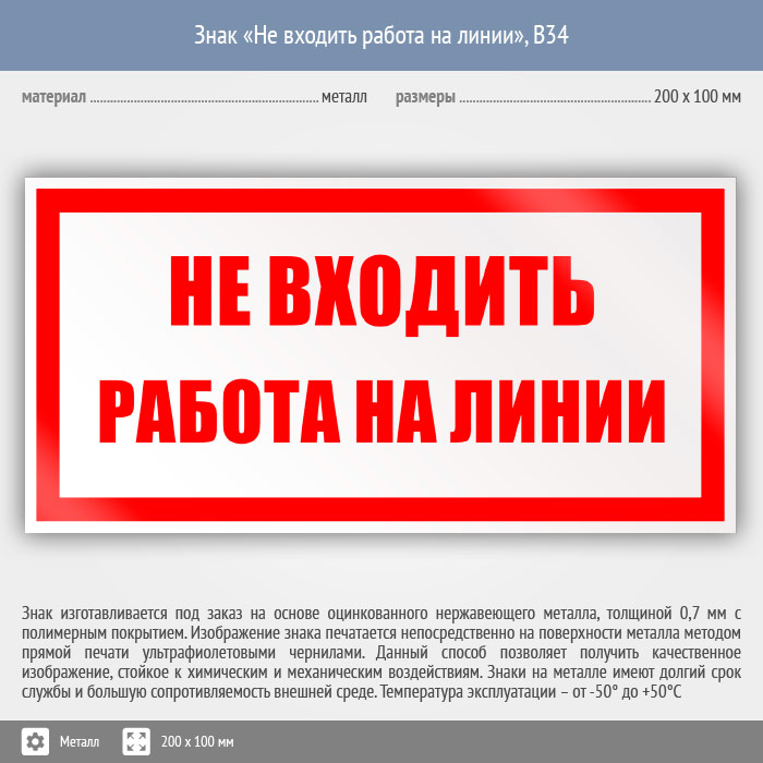 Знак «Не входить работа на линии», B34 (металл, 200х100 мм) в Альметьевске купить