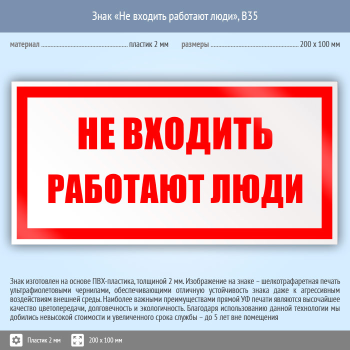 Знак «Не входить работают люди», B35 (пластик, 200х100 мм) в Альметьевске купить