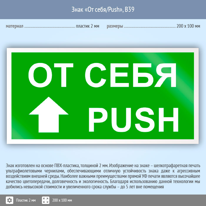 Знак «От себя/Push», B39 (пластик, 200х100 мм) в Альметьевске купить