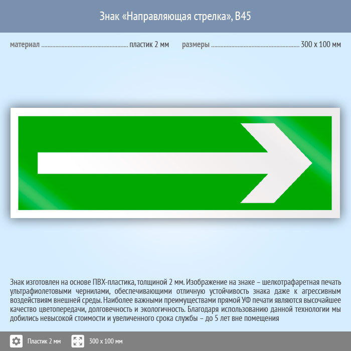 Знак «Направляющая стрелка», B45 (пластик, 300х100 мм) в Альметьевске купить