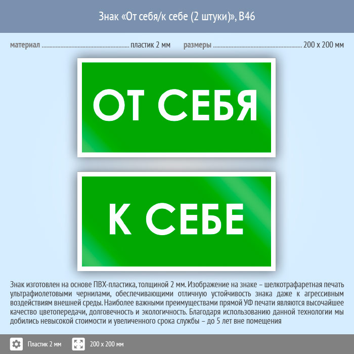 Знак «От себя/к себе», B46 (2 штуки, пластик, 200х100 мм) в Альметьевске купить