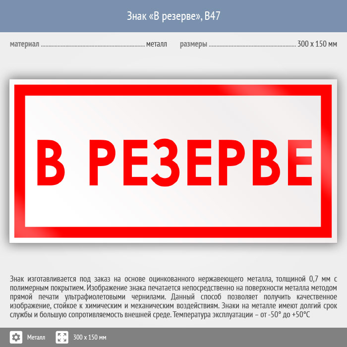 Знак «В резерве», B47 (металл, 300х150 мм) в Альметьевске купить