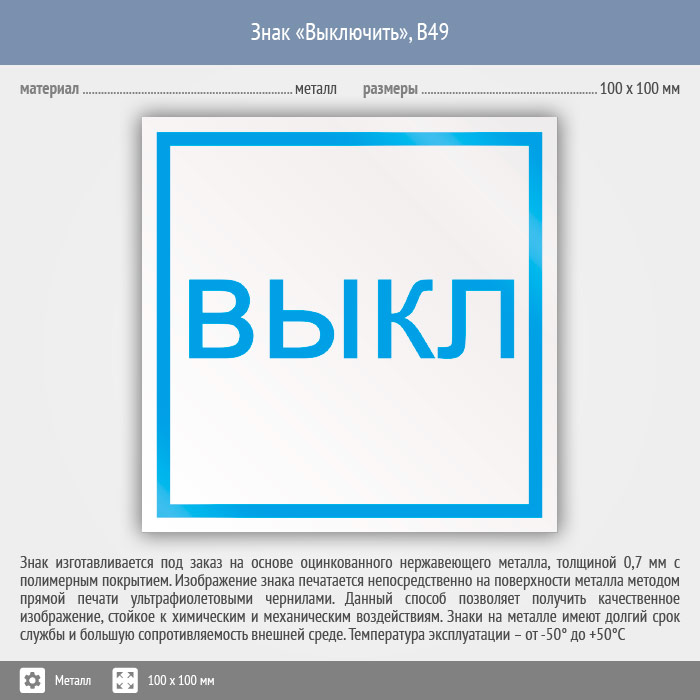 Знак «Выключить», B49 (металл, 100х100 мм) в Альметьевске купить