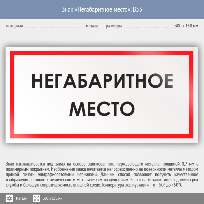 Знак «Негабаритное место», B55 (металл, 300х150 мм) в Альметьевске купить