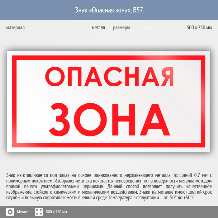 Знак «Опасная зона», B57 (металл, 500х250 мм) в Альметьевске купить
