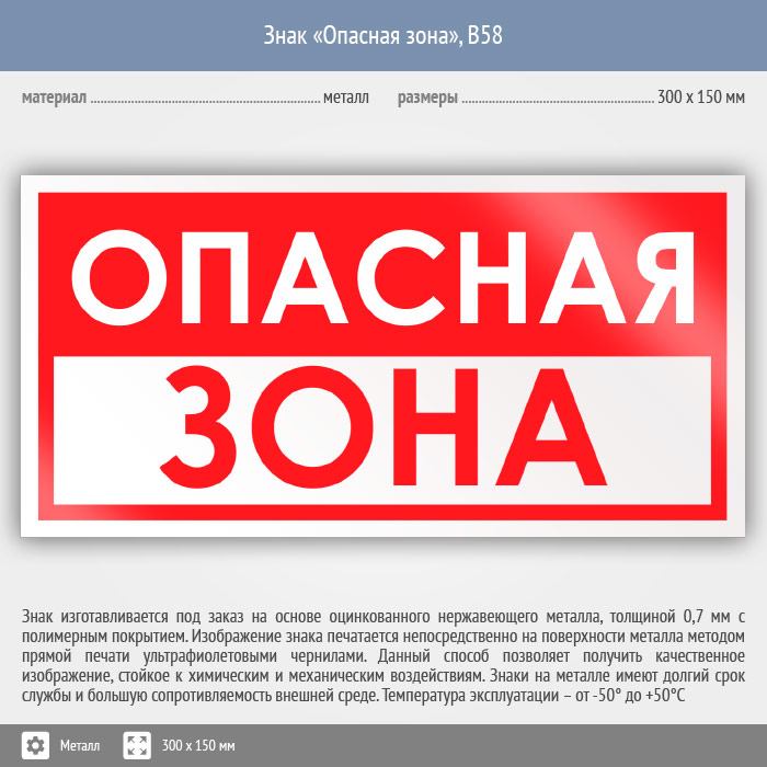 Знак «Опасная зона», B58 (металл, 300х150 мм) в Альметьевске купить