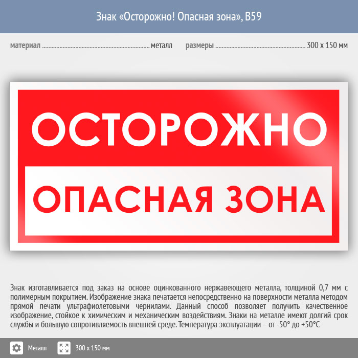 Знак «Осторожно! Опасная зона», B59 (металл, 300х150 мм) в Альметьевске купить