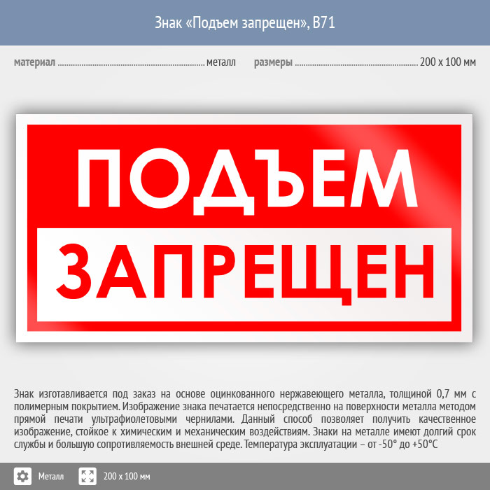 Знак «Подъем запрещен», B71 (металл, 200х100 мм) в Альметьевске купить