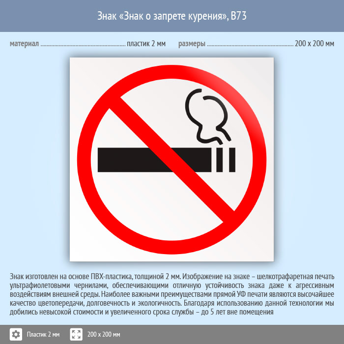 Знак «Знак о запрете курения», B73 (пластик, 200х200 мм) в Альметьевске купить
