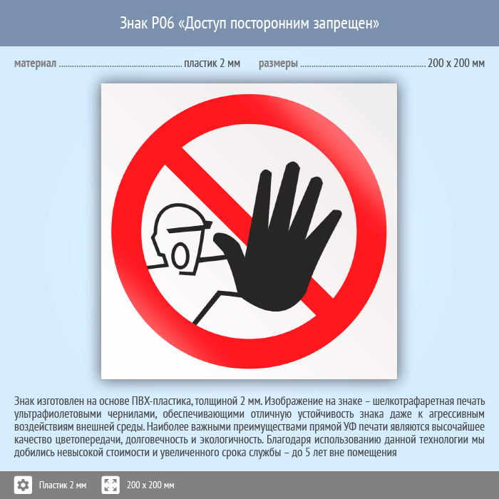 Знак P06 «Доступ посторонним запрещен» (пластик, 200х200 мм) в Альметьевске купить