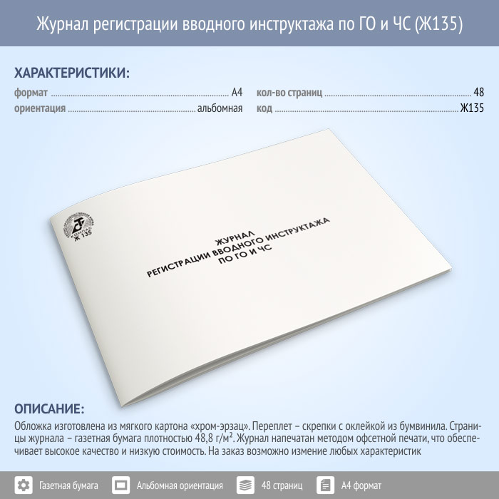 Журнал регистрации вводного инструктажа по ГО и ЧС (48 стр., Ж135) в Альметьевске купить