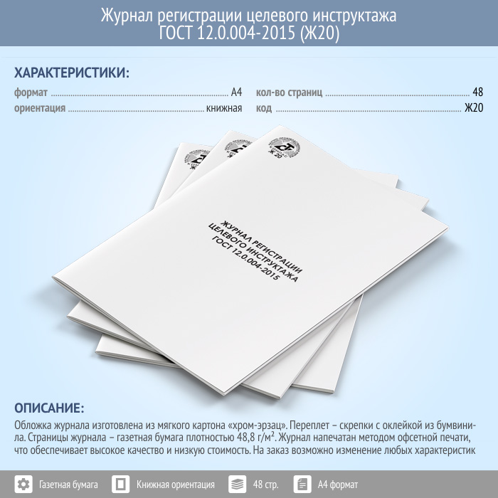 Журнал регистрации целевого инструктажа (ГОСТ 12.0.004-2015) (Ж20) в Альметьевске купить