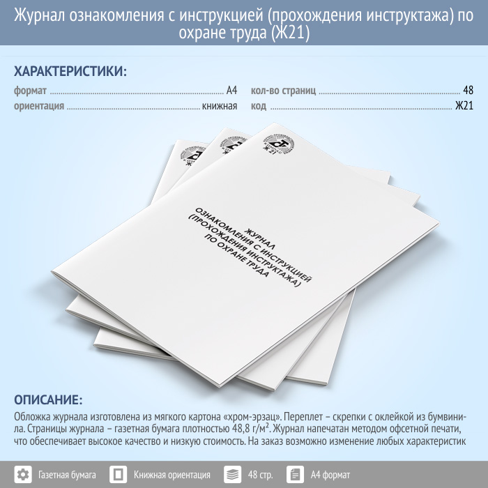 Журнал ознакомления с инструкцией (прохождения инструктажа) по охране труда (Ж21) в Альметьевске купить