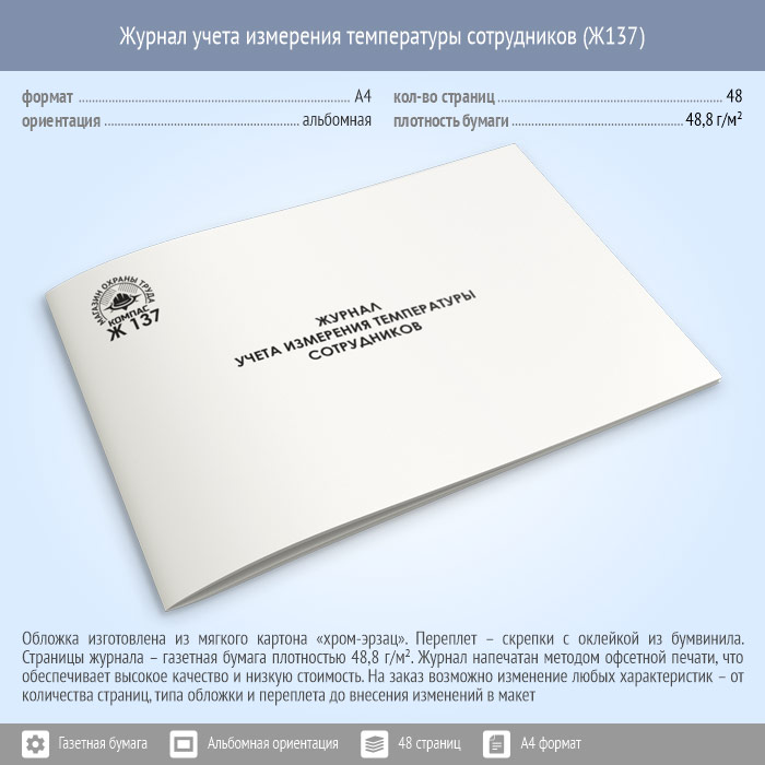 Журнал учета измерения температуры сотрудников (48 стр., Ж137) в Альметьевске купить