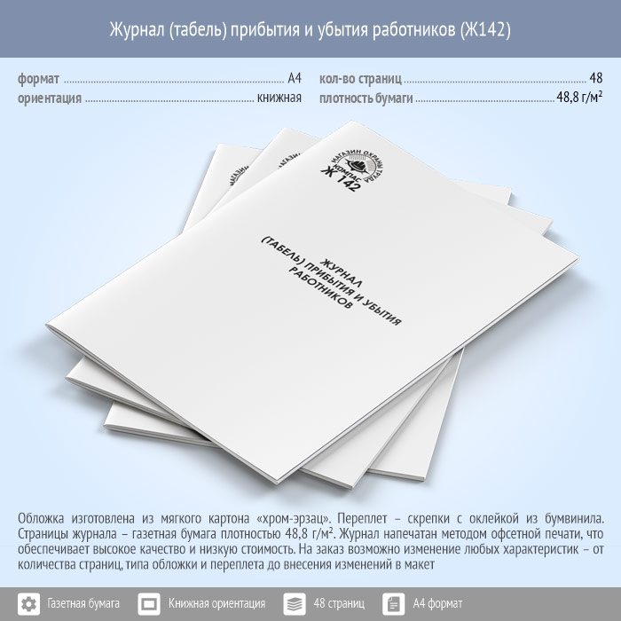 Журнал (табель) прибытия и убытия работников (48 стр., Ж142) в Альметьевске купить