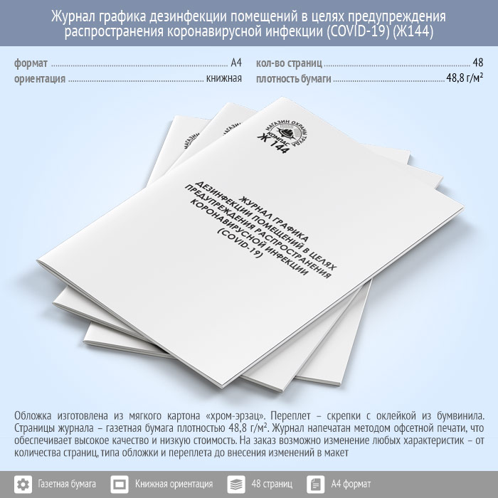 Журнал графика дезинфекции помещений в целях предупреждения распространения коронавирусной инфекции (COVID-19) (48 стр., Ж144) в Альметьевске купить