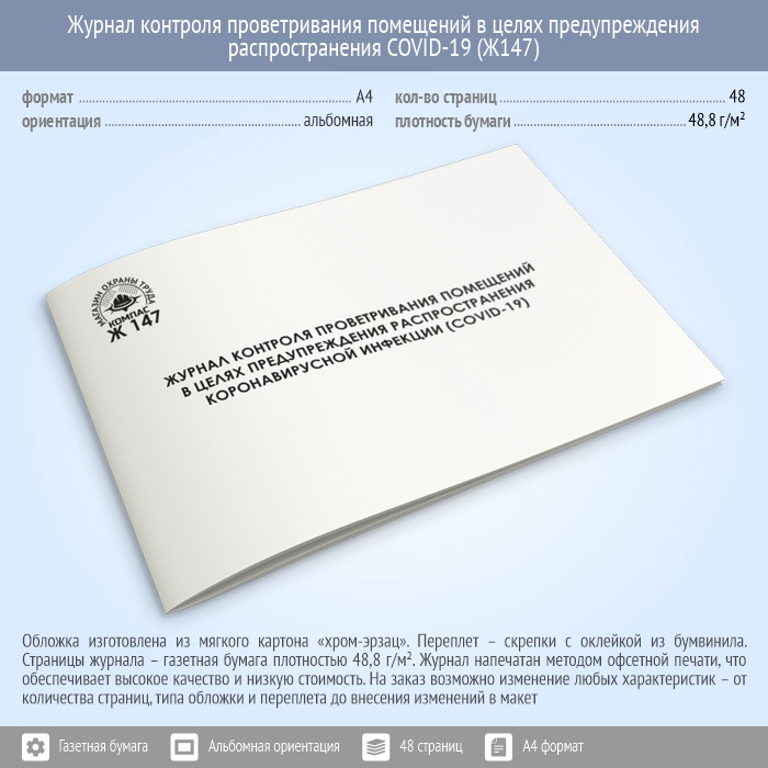 Журнал контроля проветривания помещений в целях предупреждения распространения коронавирусной инфекции (COVID-19) (48 стр., Ж147) в Альметьевске купить