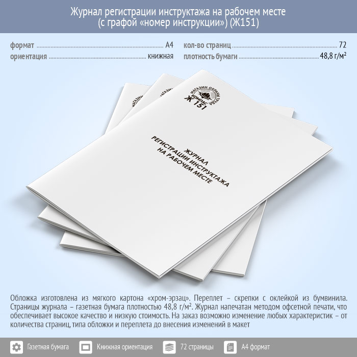 Журнал регистрации инструктажа на рабочем месте (с графой «номер инструкции») (72 стр., Ж151) в Альметьевске купить
