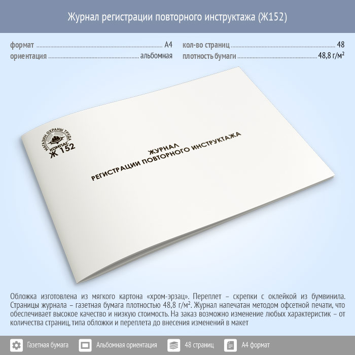 Журнал регистрации повторного инструктажа (48 стр., Ж152) в Альметьевске купить