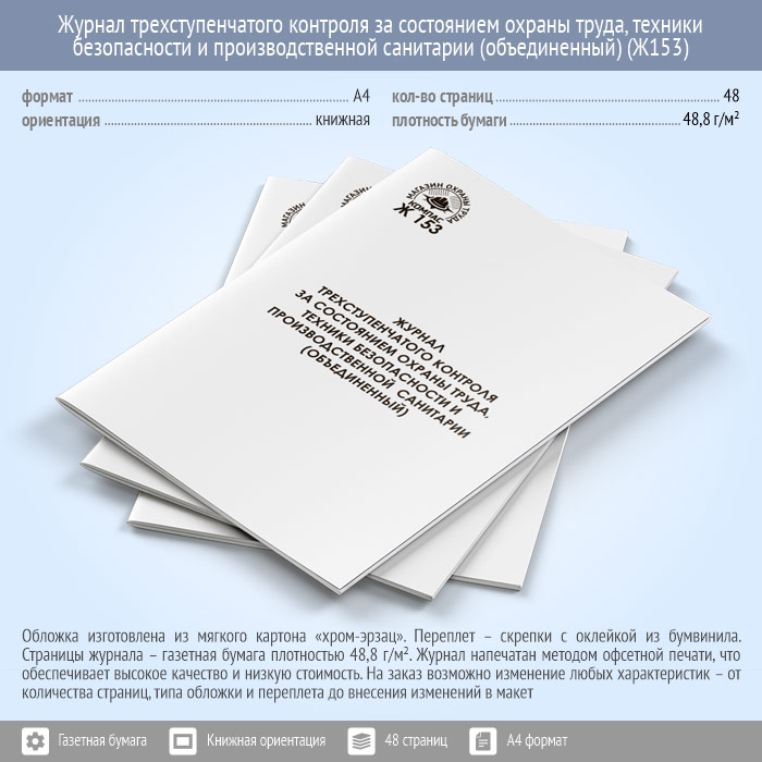 Журнал трехступенчатого контроля за состоянием охраны труда, техники безопасности и производственной санитарии (объединенный) (48 стр., Ж153) в Альметьевске купить