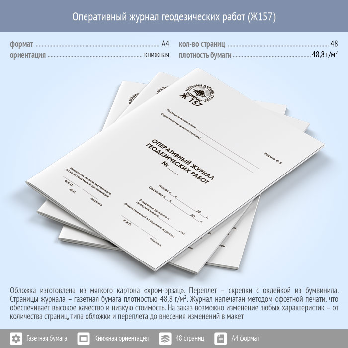 Оперативный журнал геодезических работ (48 стр., Ж157) в Альметьевске купить