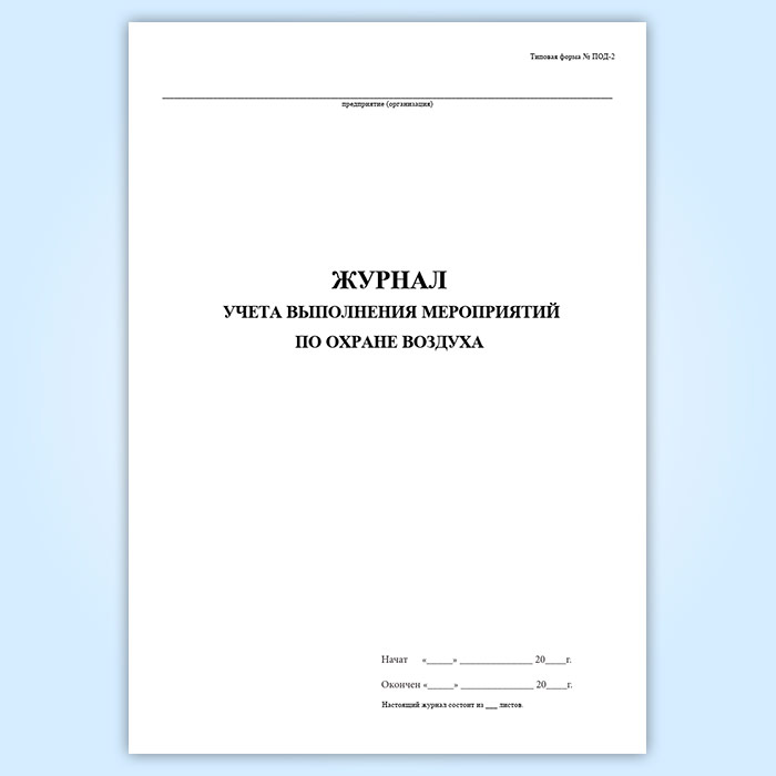 Журнал учета выполнения мероприятий по охране воздуха (форма ПОД-2) в Альметьевске купить