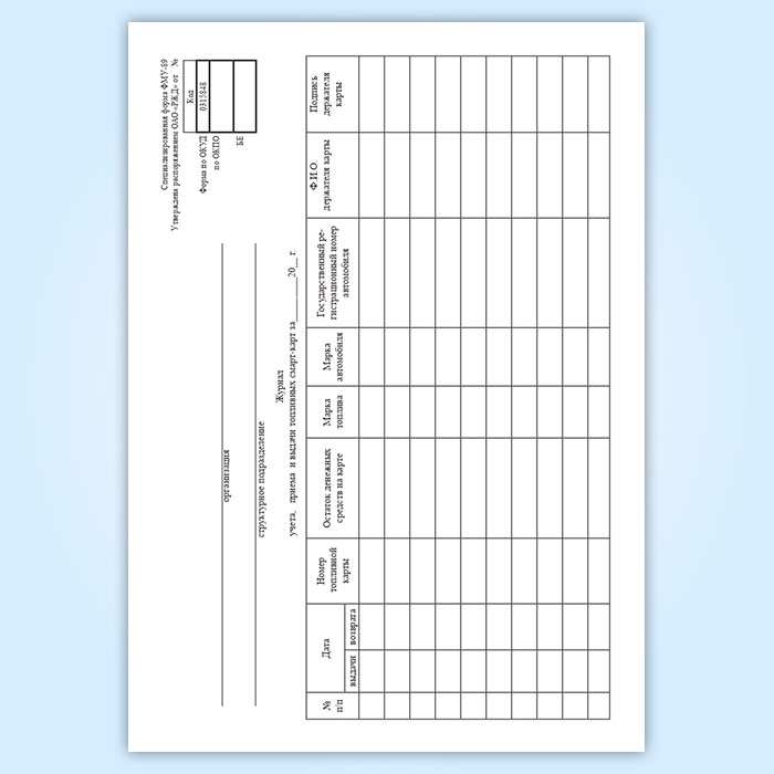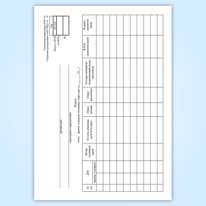 Журнал учета, приема и выдачи топливных смарт-карт в Альметьевске купить
