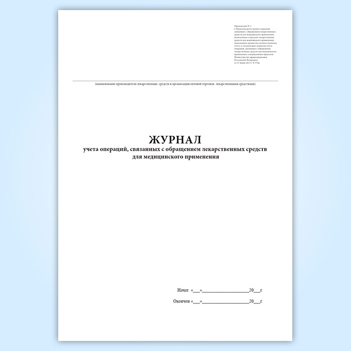 Журнал учета операций, связанных с обращением лекарственных средств для медицинского применения (для производителя лекарственных средств и организации оптовой торговли лекарственными средствами) в Альметьевске купить