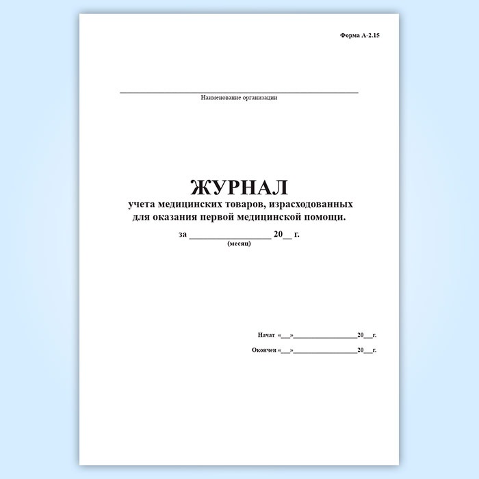 Журнал учета медицинских товаров, израсходованных для оказания первой медицинской помощи (форма А-2.15) в Альметьевске купить
