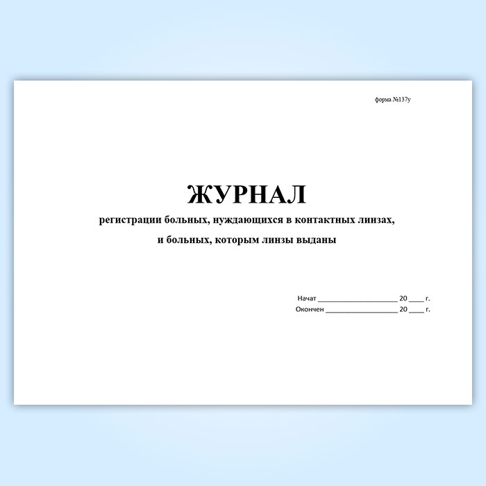 Журнал регистрации больных, нуждающихся в контактных линзах, и больных, которым линзы выданы (форма № 137/у) в Альметьевске купить