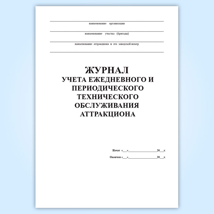 Журнал учета ежедневного и периодического технического обслуживания аттракциона в Альметьевске купить