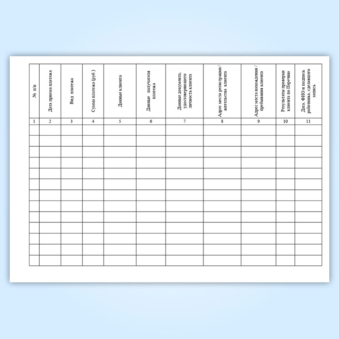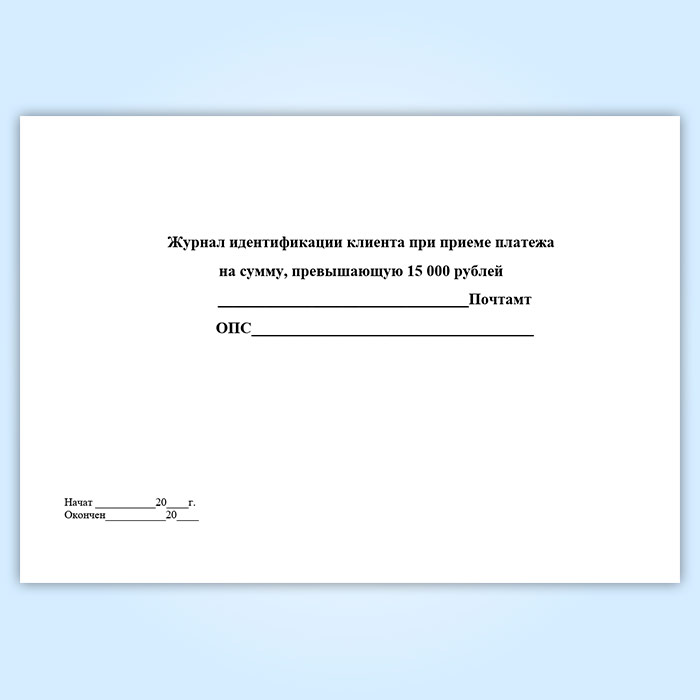 Журнал идентификации клиента при приеме платежа на сумму, превышающую 15 000 рублей в Альметьевске купить