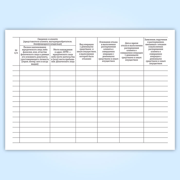 Журнал учета отказов в выполнении распоряжения клиентов о совершении операции с денежными средствами и иным имуществом в Альметьевске купить
