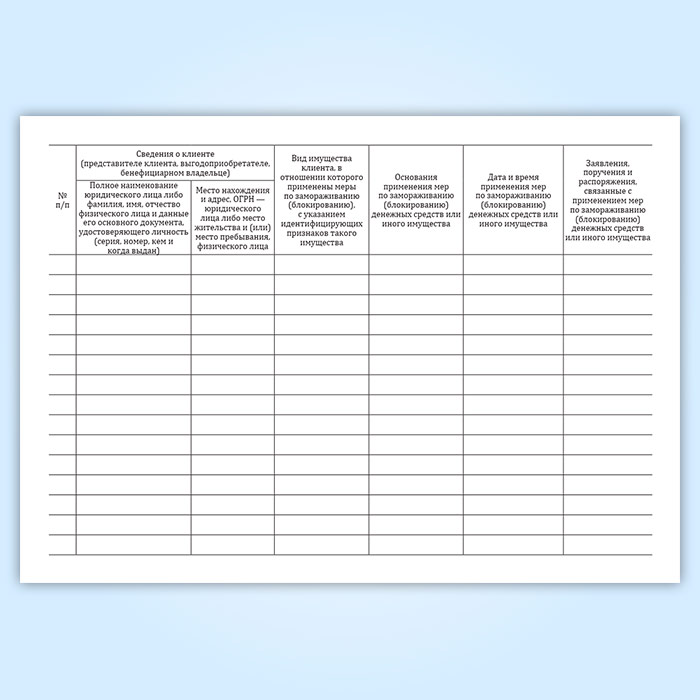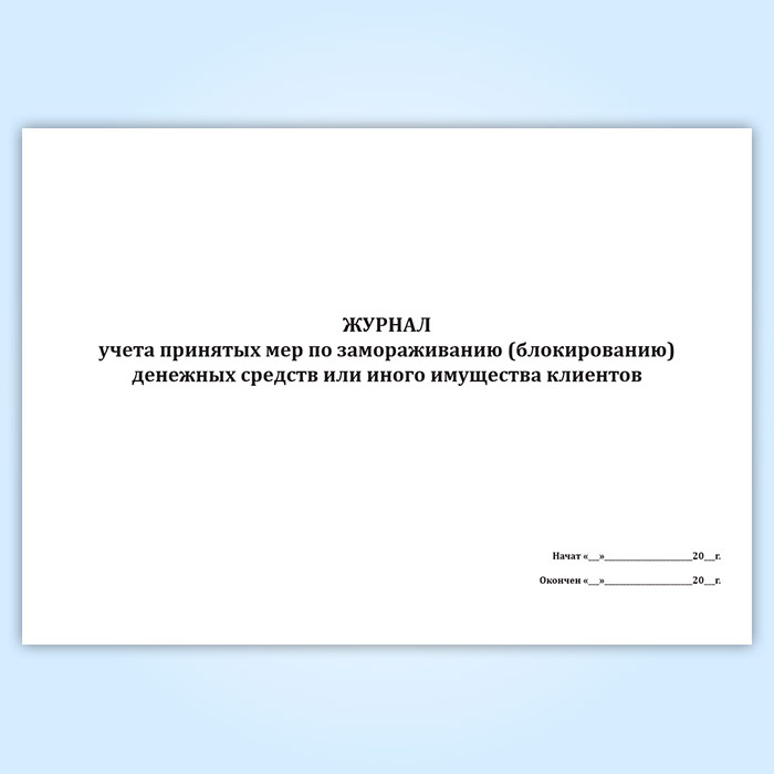 Журнал учета принятых мер по замораживанию (блокированию) денежных средств или иного имущества клиентов в Альметьевске купить