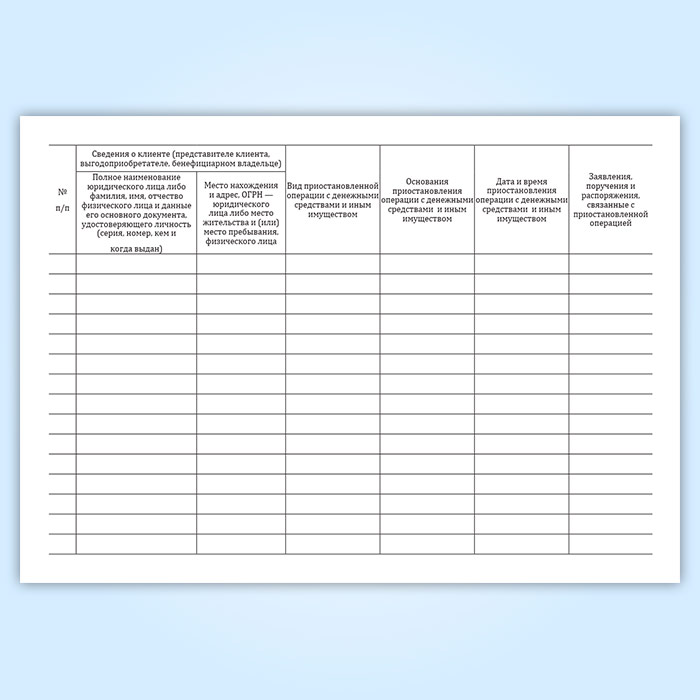 Журнал учета приостановленных операций с денежными средствами и иным имуществом клиента в Альметьевске купить