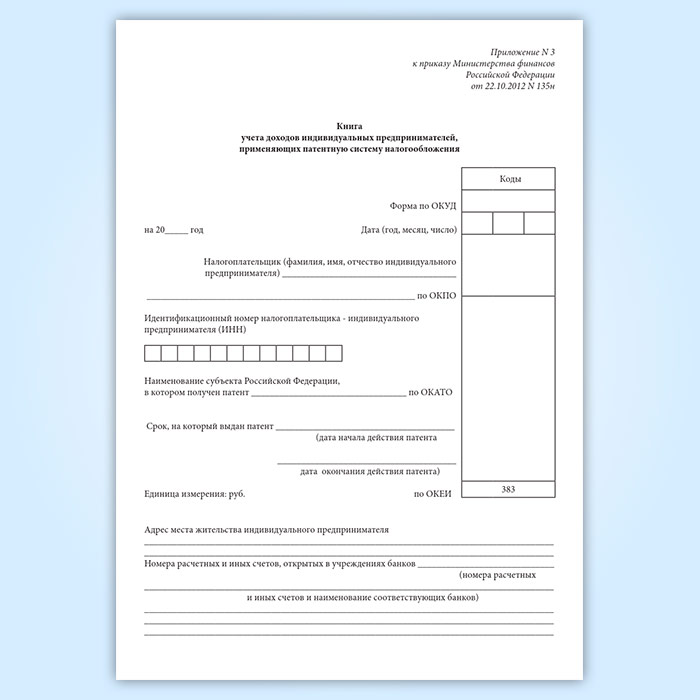 Книга учета доходов индивидуальных предпринимателей, применяющих патентную систему налогообложения в Альметьевске купить