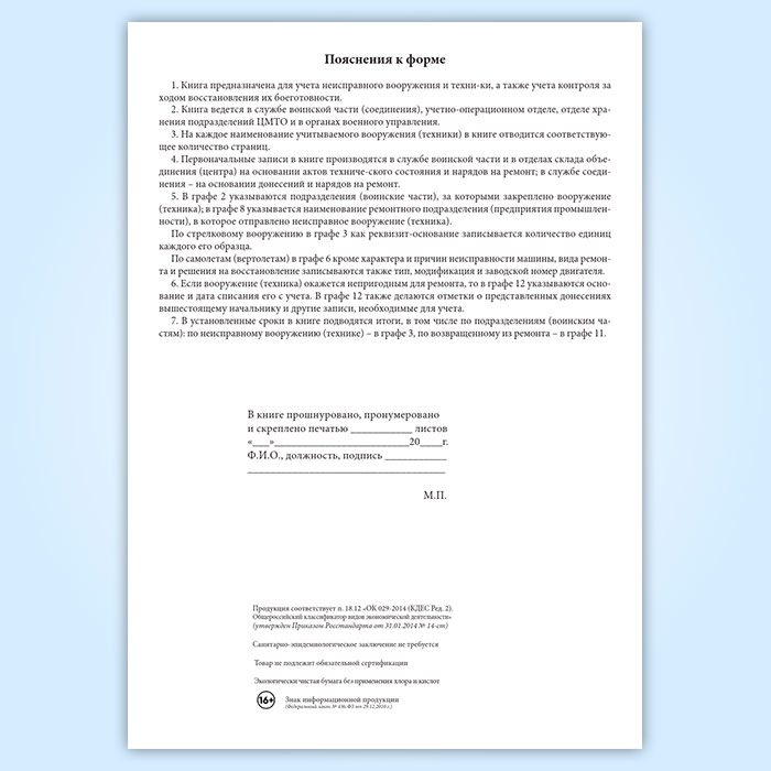 Книга учета неисправного вооружения и военной техники (форма 19) в Альметьевске купить