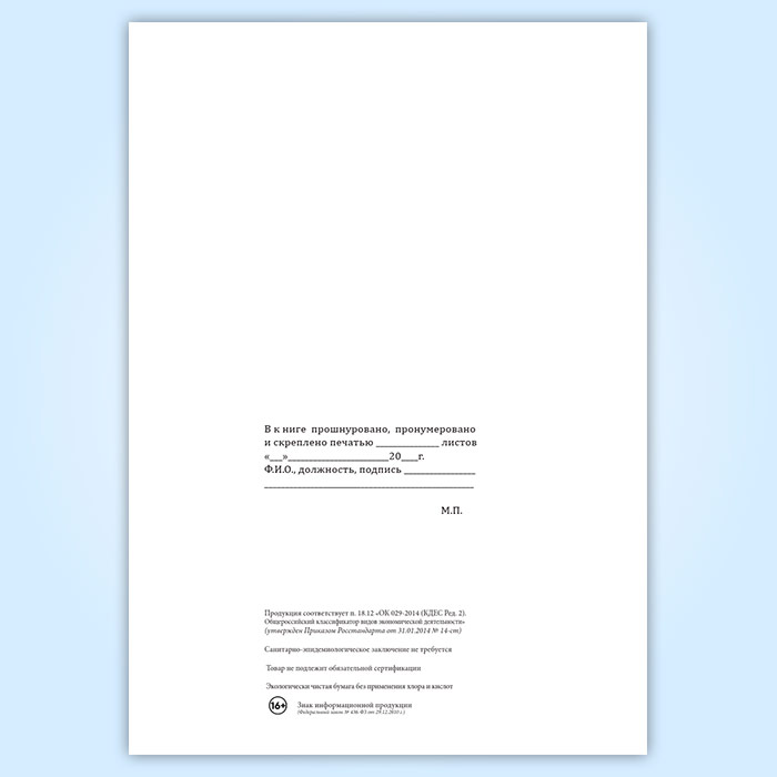 Вы получаете печатную продукцию прошнурованной и c местом для вашей печати в соответствии с действующими нормативными документами:
