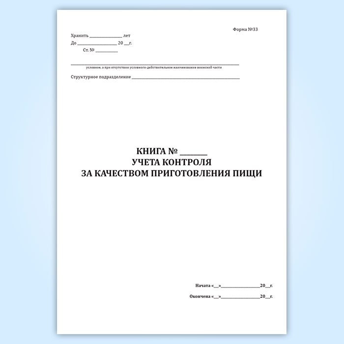 Книга учета контроля за качеством приготовления пищи (форма 33) в Альметьевске купить