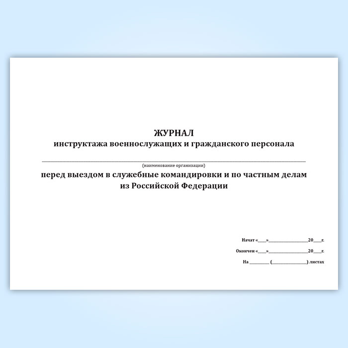 Журнал инструктажа военнослужащих и гражданского персонала перед выездом в служебные командировки и по частным делам из Российской Федерации в Альметьевске купить