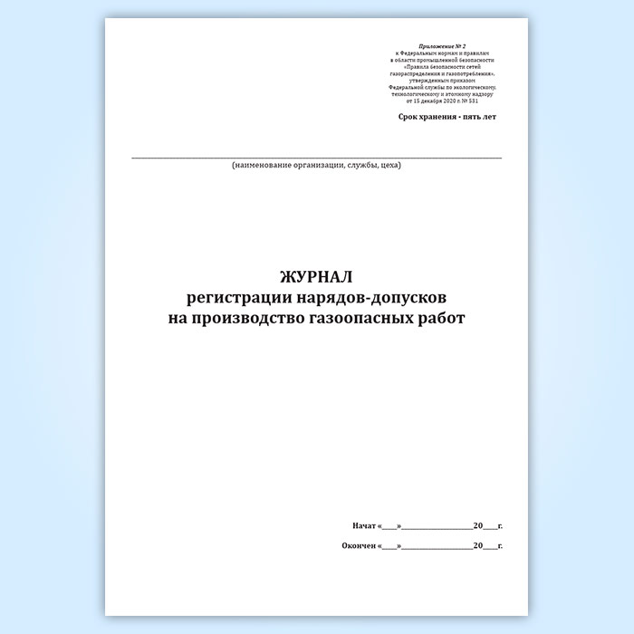 Журнал регистрации нарядов-допусков на производство газоопасных работ в Альметьевске купить