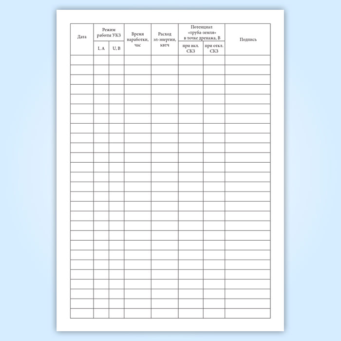 Полевой журнал учета работы установки катодной защиты в Альметьевске купить