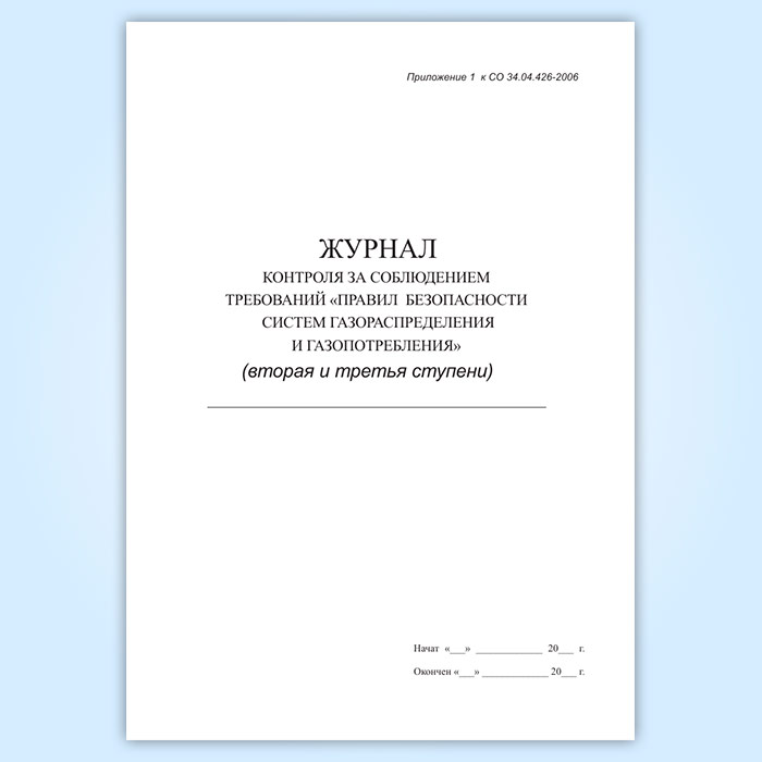 Журнал контроля за соблюдением требований Правил безопасности систем газораспределения и газопотребления (вторая и третья ступени) в Альметьевске купить