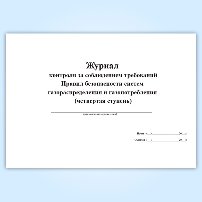 Журнал контроля за соблюдением требований Правил безопасности систем газораспределения и газопотребления (четвертая ступень) в Альметьевске купить