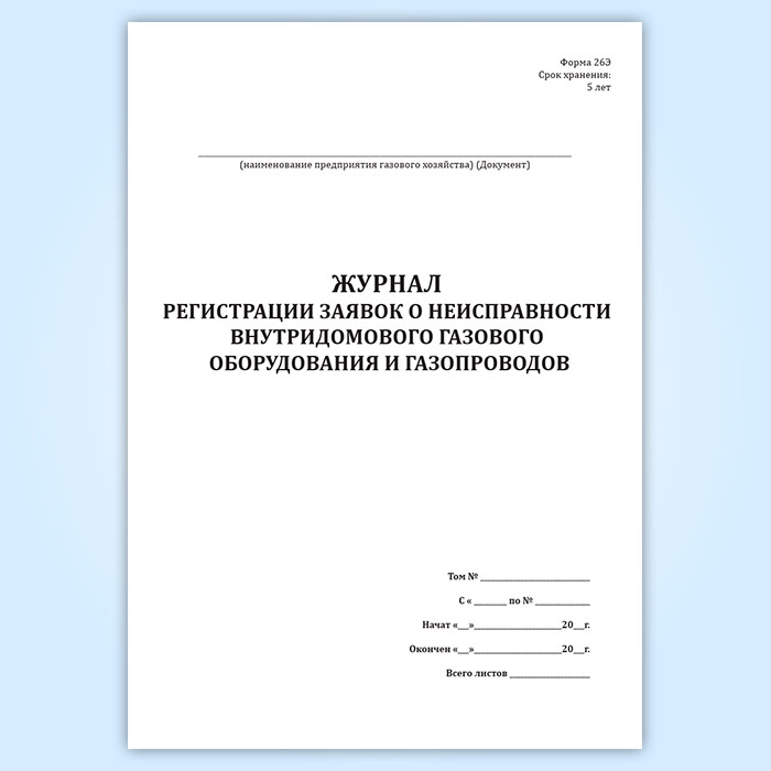 Журнал регистрации заявок о неисправности внутридомового газового оборудования и газопроводов (форма 26-Э) в Альметьевске купить