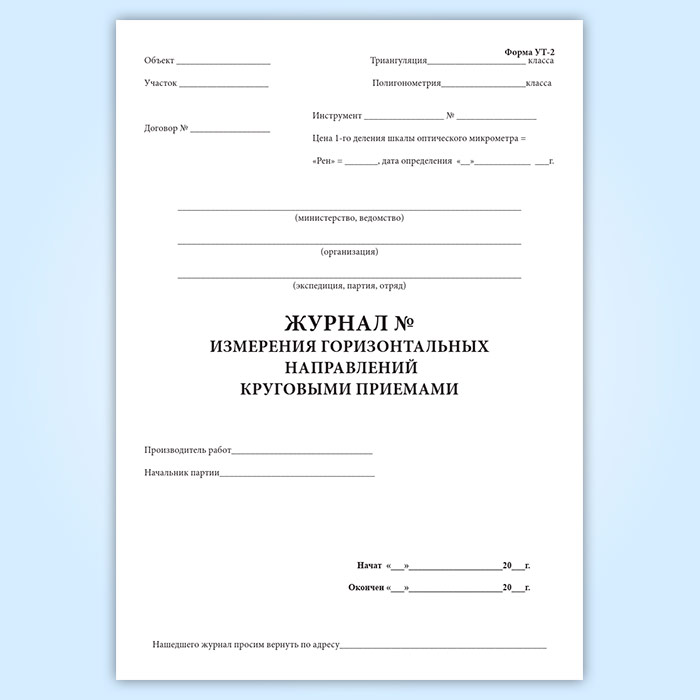 Журнал измерения горизонтальных направлений круговыми приемами (форма УТ-2) в Альметьевске купить